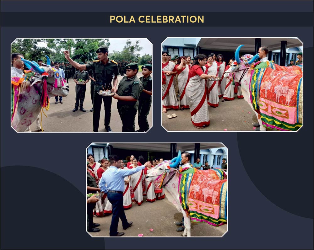 To provide a first hand experience of this age old tradition, a bull was worshipped during the morning assembly by Head Master Mr Ajay Shirke, Bhonsala Military School, Principal Dr J S Riar, Bhonsala Sainik School, the academic staff and all school appointments. Puran Poli was offered to the bull and ‘Dakshina’ was given to the owner as a sign of love and respect. Mrs Pallavi Kulkarni, Counsellor of the school, explained in her address that the festival of ‘Pola’ falls on the Kushapatini Amavasya in the month of Shravana and one can see million of stars in the night which gives an appearance of wheat flour being sprinkled in the sky; hence it is named as ‘Pithori Amavasya’. Pola is celebrated for two days i.e. ‘Bail Pola' and ‘Tanha Pola’. She further gave a mythological reference that when Lord Krishna was a child, his maternal uncle Kansa sent a demon named ‘Polasur’ to kill him. However, using his divine power, Lord Krishna killed the demon.